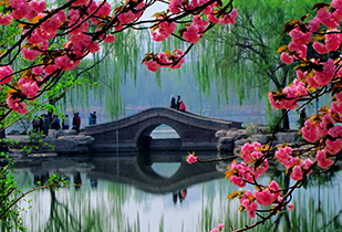 在水一方:园内目前体量较大的一株吉野类?;?,独立湖畔丰姿绰约。她横生的花枝舒展秀丽,像热情开张的臂膀。她与春水相映而成的画面,已成为公园?;ǖ拇砭爸?,也成为游人争相合影的佳处。 详情>>