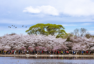 留春园:2017年新改造区域,其中玉渊春秋景区种植早樱已初具规模。游客可选择登高远眺,樱花掩映下的湖面春光旖旎。 详情>>